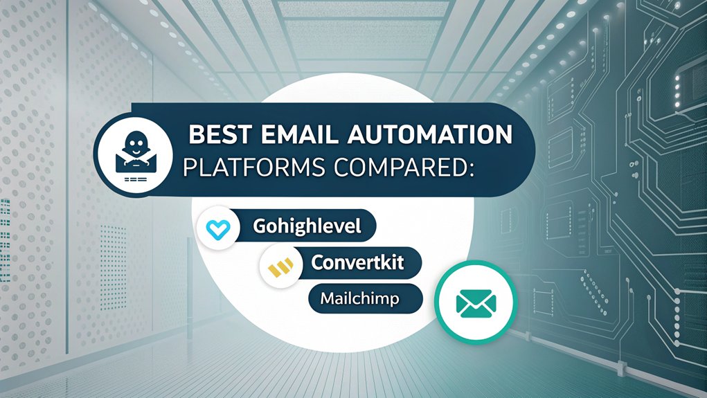 When comparing email automation platforms, GoHighLevel stands out with its multi-channel strategy, competitive pricing, and versatile customization for email workflows. ConvertKit offers a user-friendly interface and scalable plans, making it ideal for beginners and growing businesses. Mailchimp excels with over 250 integrations and solid customer support, enhancing your marketing efforts. Each platform has unique benefits designed to meet varied business needs, and exploring further will reveal which aligns best with your strategic goals.
