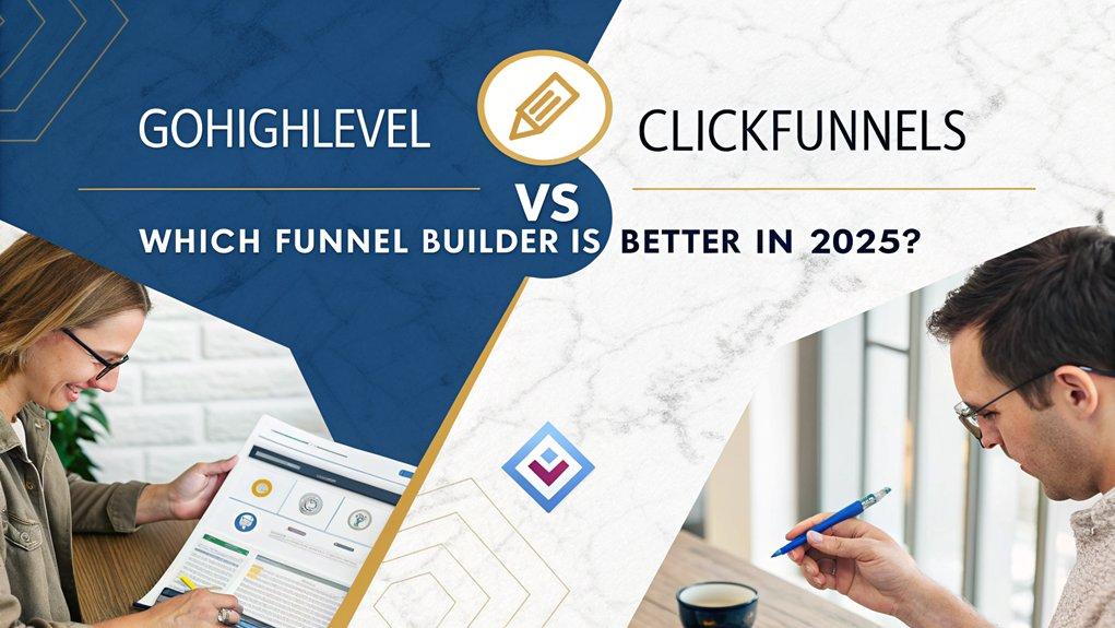 In 2025, choosing between GoHighLevel and ClickFunnels depends on your business priorities. GoHighLevel shines with robust CRM features, automation tools, and multi-channel marketing, making it perfect for agencies seeking comprehensive solutions. On the other hand, ClickFunnels excels with its intuitive drag-and-drop funnel builder and vast template library, ideal for entrepreneurs focused on ease of use and conversion optimization. Both start at $97/month but suit different needs. For insights on maximizing these platforms’ potential, explore further.
